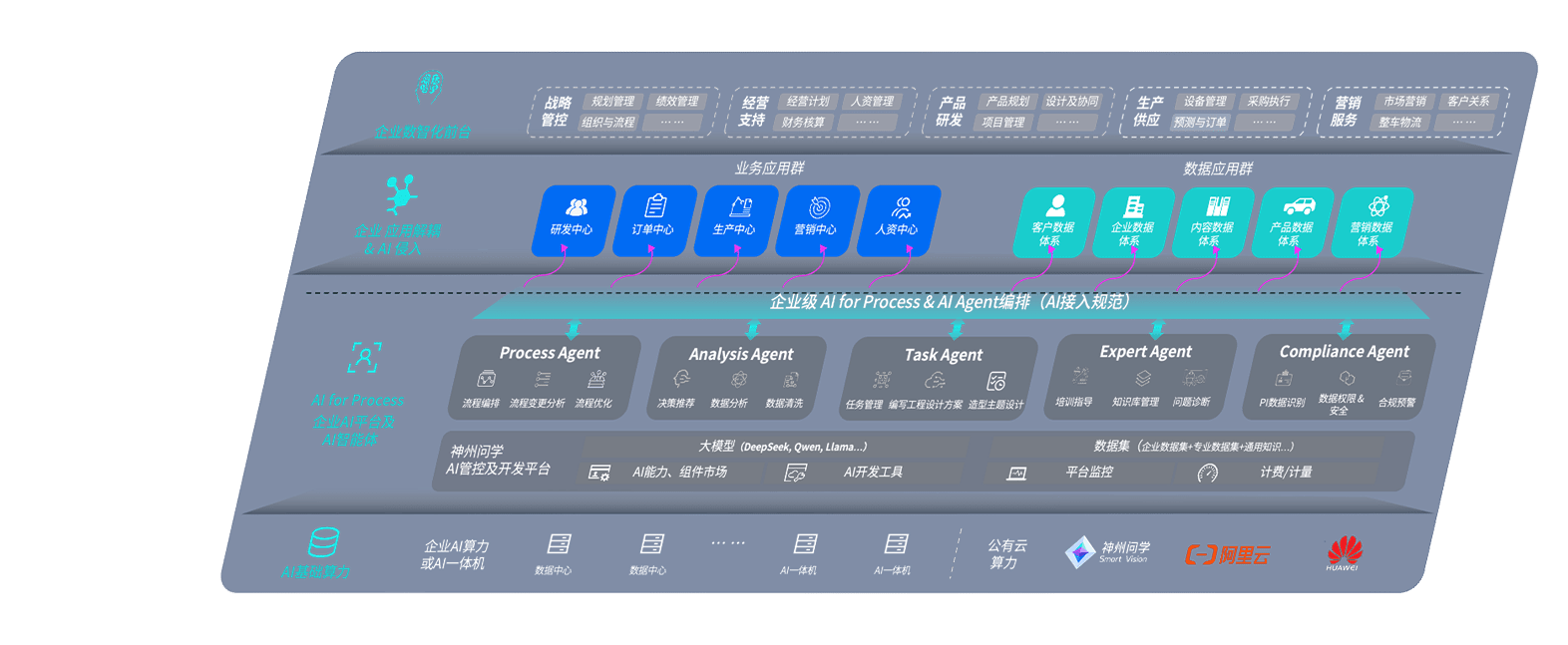 z6com尊龙问学智车解决方案是一套基于AI技术的汽车行业智能化系统,,,覆盖从底层算力到顶层AI应用的全栈方案。。。。方案由算力层、、、、模型层和应用层组成:算力层,,,,方案支持多种一体机配置,,,,具备云端灵活部署、、、多云适配以及动态优化计算资源的能力;模型层,,z6com尊龙问学平台版提供了企业级AI应用一站式构建与管理平台,,,,支持基于后训练强化技术的汽车企业专属模型的训练、、、、评测和运营;应用层,,z6com尊龙问学DeepSeek版提供包括超级员工、、、、智能招采、、智能营销、、、、智能客服、、、AI for BI等一系列解决方案,,,,可助力汽车行业实现数字化转型,,,,让管理更智能、、、响应更敏捷。。。。