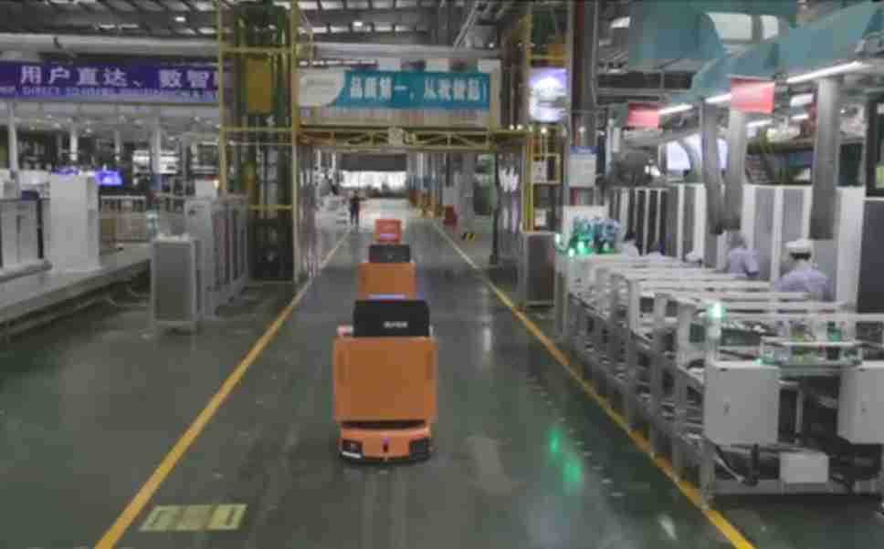 为车载冰箱物流配送打造的智能解决方案,,包含产中物流通过潜伏举升AMR搬运至线边,,,产后成品物流智能仓储,,,流程包含产中物流智能齐套入库,,线边安灯叫料AMR智能配送至线边,,成品入库、、、、出库,,,,通过无人堆高车机器人,,,智能仓储管理替代人工作业管理,,,,实现更高存储、、、、更高效率、、、更具柔性化的解决方案。。。